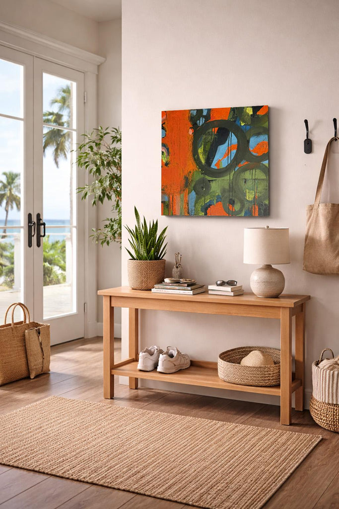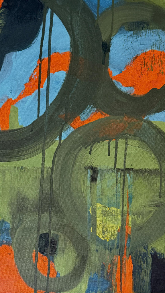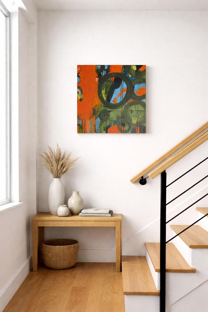 Original Abstract Painting 24x24 Wall Art Orange Green Black Blue Contemporary Art Ready to Hang Stretched Canvas Not A Print