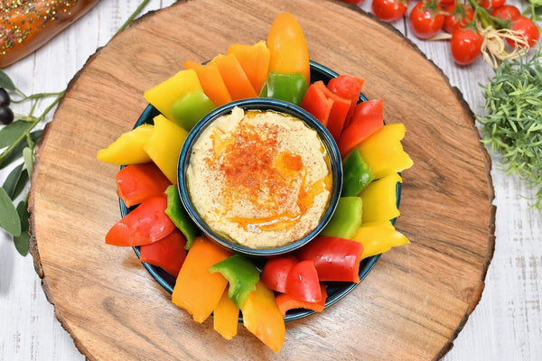 The medium size bowl set is attached, and is perfect for serving pairable snacks. This piece is great party tableware for serving chips and salsa, hummus and vegetables, fruit, dips and more!