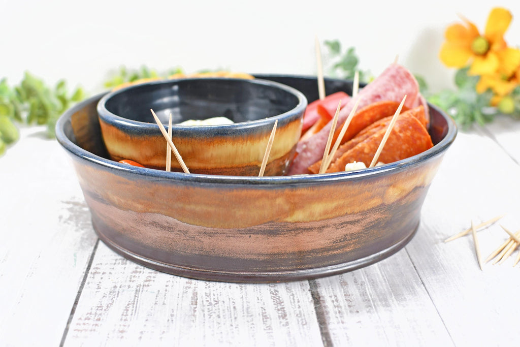 Chip Dip Ceramic Bowl Set Handmade Copper Black Detached Nested Snack Stoneware Pottery Charcuterie Vegetables Party Dining Serving Dishes