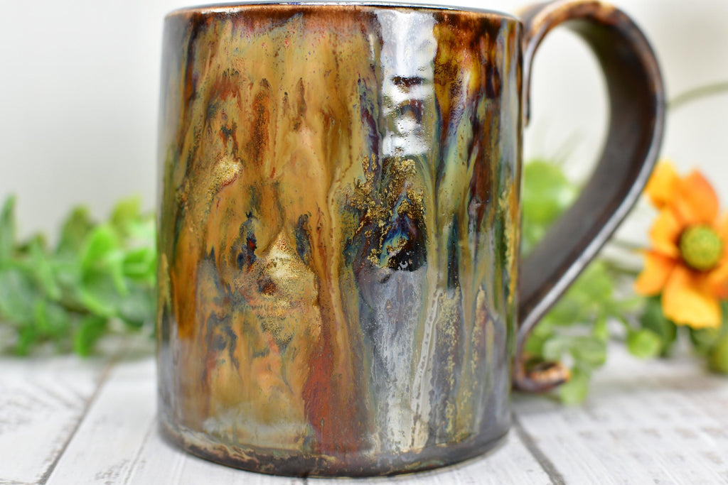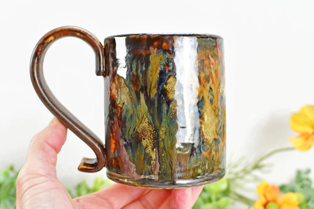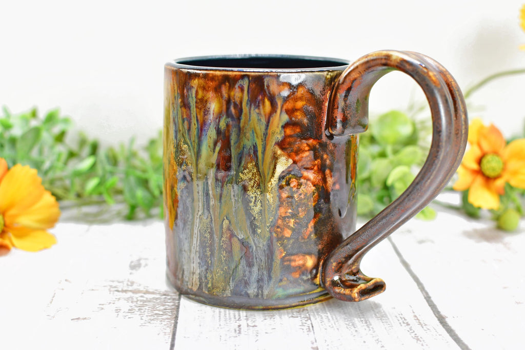 My handmade, hand-painted bronze stoneware coffee cup will make a unique wedding or ninth anniversary gift for your husband or wife. I hand painted with several layers of earthy and drippy lead-free, non-toxic glaze. Elevate your morning brew with a functional piece of ceramic pottery. This piece also makes a beautiful gift for housewarming, wedding anniversary, birthday, friends, Christmas, teacher, hostess, and more.