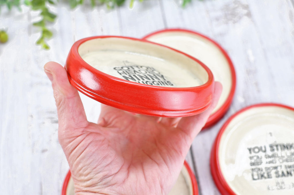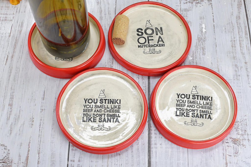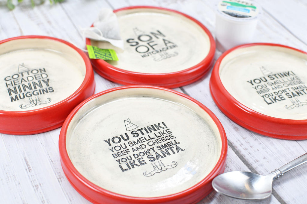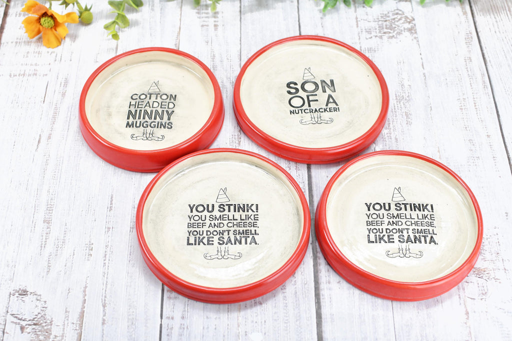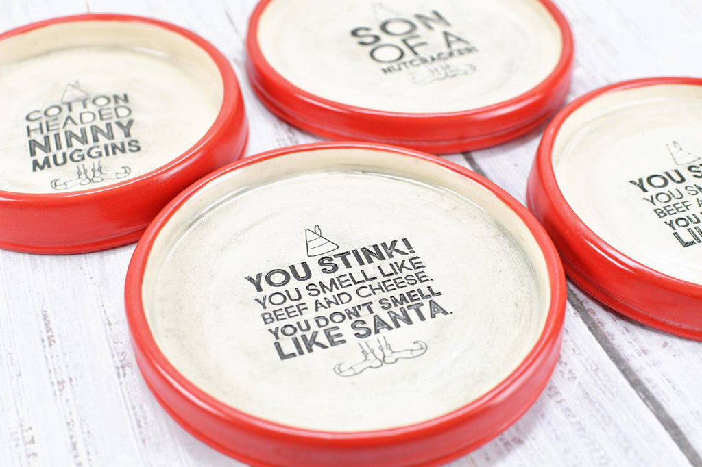 Buddy The Elf movie quote Christmas spoon rests and trinket dishes will be a humorous addition to your Christmas holiday decor. Add to your festive xmas holiday dining table with a special holiday wine bottle drip tray (standard size bottles), use at your coffee and tea bar, use as a gravy spoon rest for Christmas dinner, delight guests with a small soap dish at sinkside, and more.