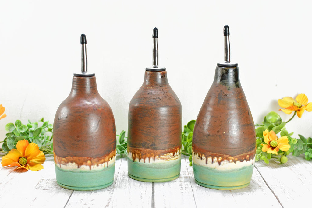 Ceramic Olive Oil Dispenser, Handmade Pottery Liquid Soap Bottle, Stoneware Bronze, Copper, Rust, Turquoise for Bathroom and Kitchen Decor