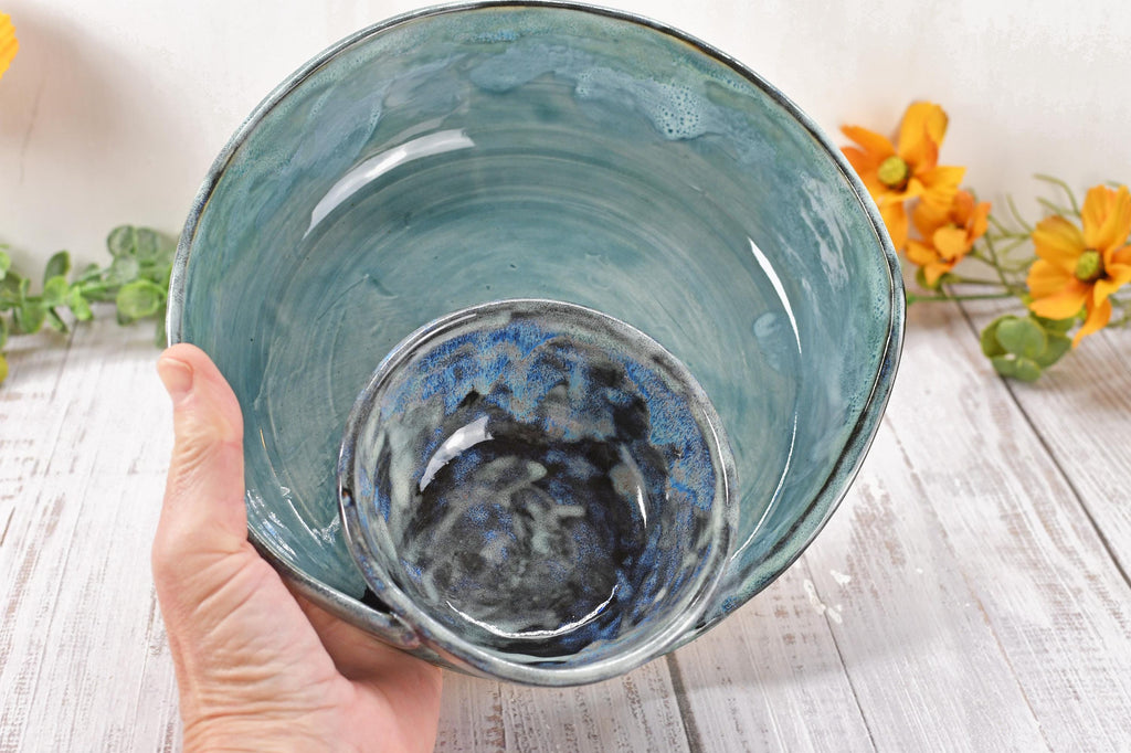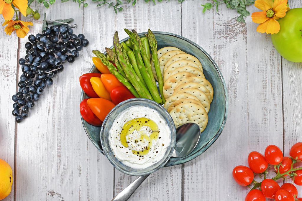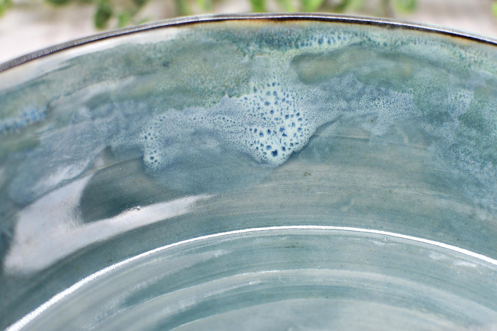 Chip Dip Ceramic Pottery Handmade Bowl, Sage Blue Black Snack Dish, Stoneware Charcuterie Party Serving Dining, Unique Housewarming Gift