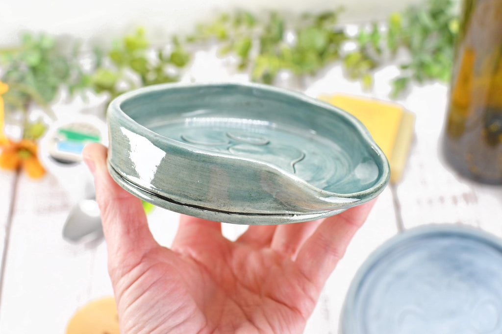 My dog paw print design is imprinted into wet clay on each of my large, handmade stoneware dishes. Use as a stove top spoon rest, decorative soap dish, wine bottle drip tray (may not fit wide/oversize bottles), trinket bowl for earrings and jewelry, tea bag rest, or as a spoon rest for coffee lovers. Each is handmade and is functional ceramic pottery, and is a unique gift for the pet cat, dog, or animal lover in your life.