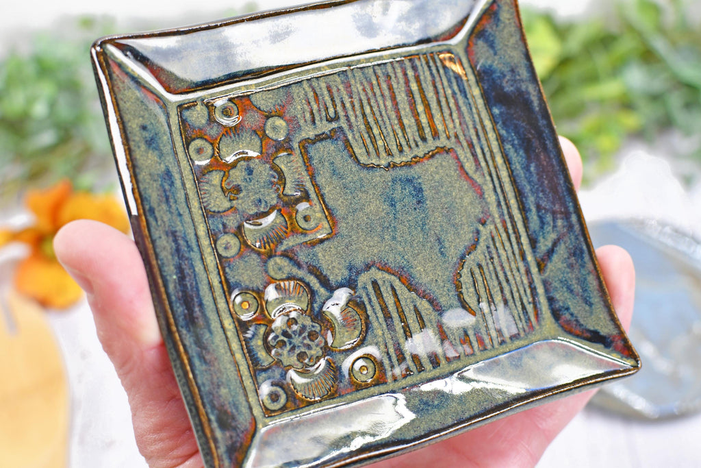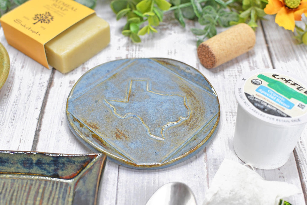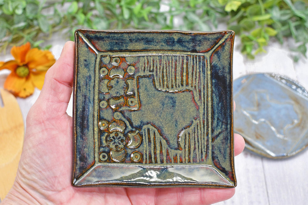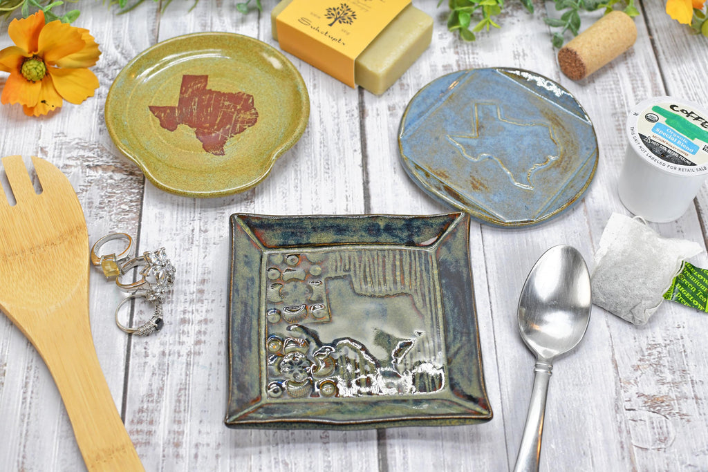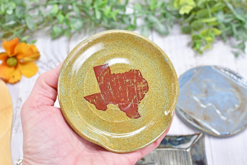 Texas State Ceramic Spoon Rest, Handmade Coffee Tea Spoon, Jewelry Trinket Dish, Stoneware Pottery, Black, Blue, Green, Brown, Rustic