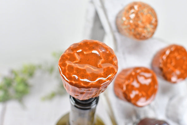 My handmade stoneware Texas wine bottle stoppers make great gifts for wine lovers. The bottle stoppers are formed by hand, hand carved, and are stamped with the state of Texas shape. I hand painted with lead-free, non-toxic glaze. Handmade ceramic pottery makes a unique gift for college graduation, groomsman, housewarming, birthday, Christmas, hostess, and more.